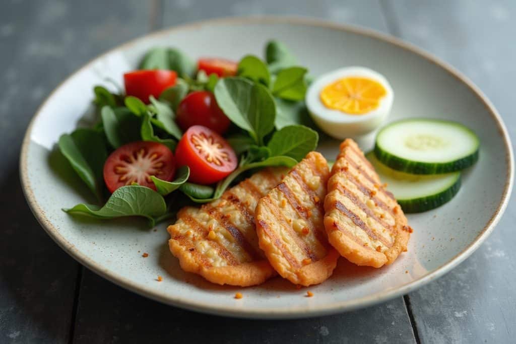 - Mageres Protein: Hühnchen (ohne Haut), Fisch (gedünstet oder gekocht), Tofu